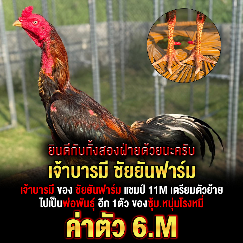 เจ้าบารมี ยอดไก่แข้งหน้า อีก1 ตัวที่หน้าจดจำ ของซุ้ม.เสี่ยโอ๋ชัยยันฟาร์ม ชนะยกที่4 แชปม์ 11.M